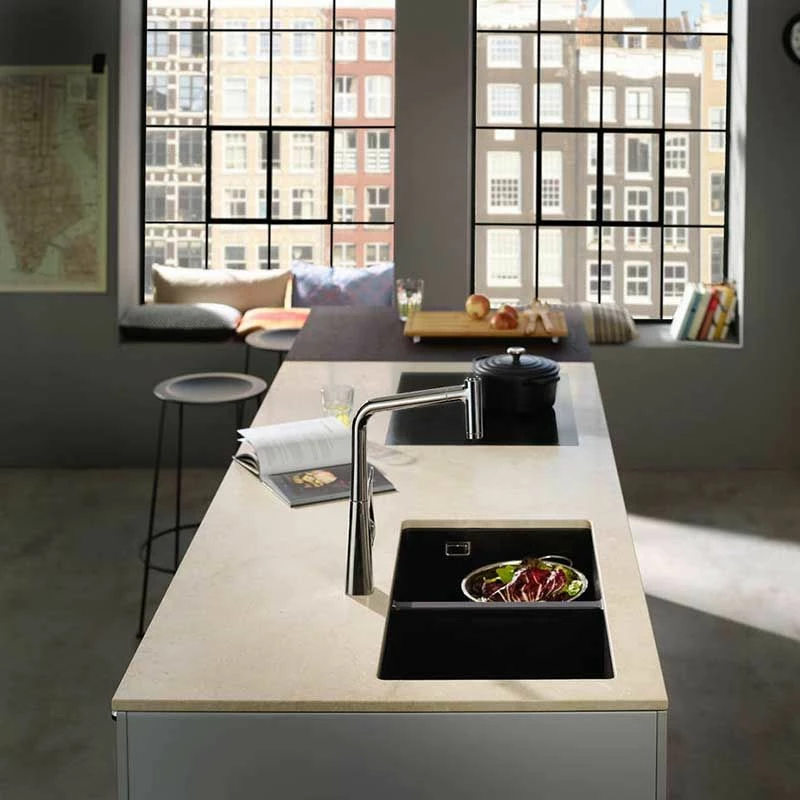 - sBox for quiet, smooth and protected hose guidance in the cabinet, under the countertop