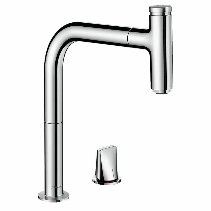 hansgrohe Metris Select M71 2-Hole Single Lever Kitchen Mixer Tap 200 With Pull-Out Spout & Sbox Single Spray Mode – Chrome – 73804000