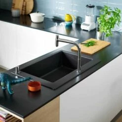 hansgrohe is known for producing high-quality fixtures, and the Metris Select M71 Kitchen Mixer Tap is no exception. It is crafted from durable materials, ensuring longevity and resistance to wear and tear, maintaining its performance and appearance over time.