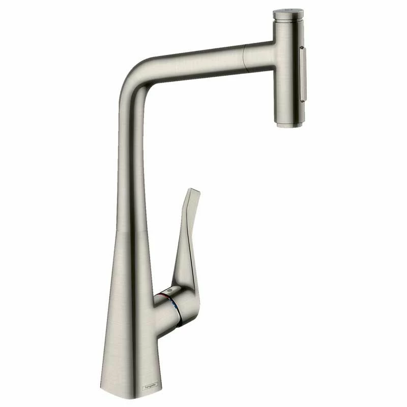 hansgrohe Metris Select M71 Single Lever Kitchen Mixer Tap 320 With Pull-Out Spray & Sbox 2 Spray Modes – Stainless Steel – 73816800