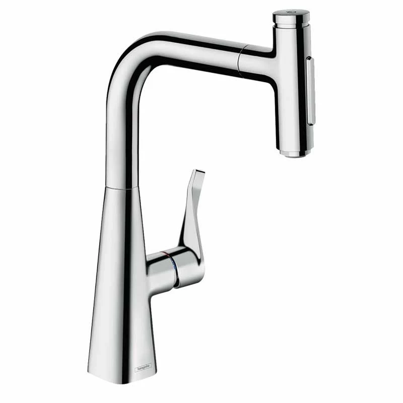 hansgrohe Metris Select M71 Single Lever Kitchen Mixer Tap With Pull-Out Spray – Chrome – 73822000