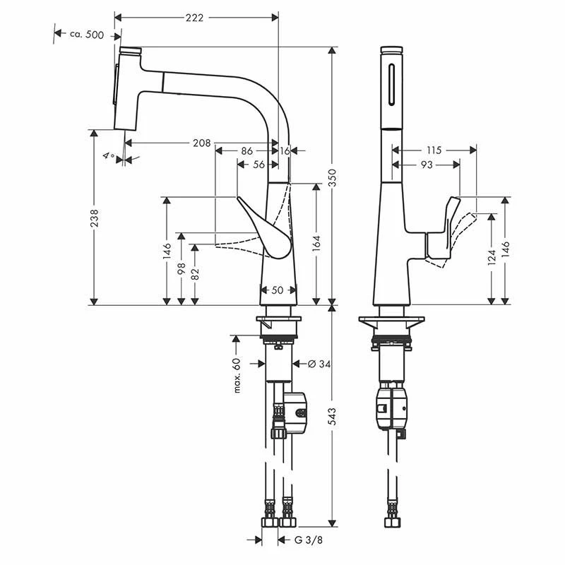 hansgrohe Metris Select M71 Single Lever Kitchen Mixer Tap With Pull-Out Spray – Stainless Steel – 73822800