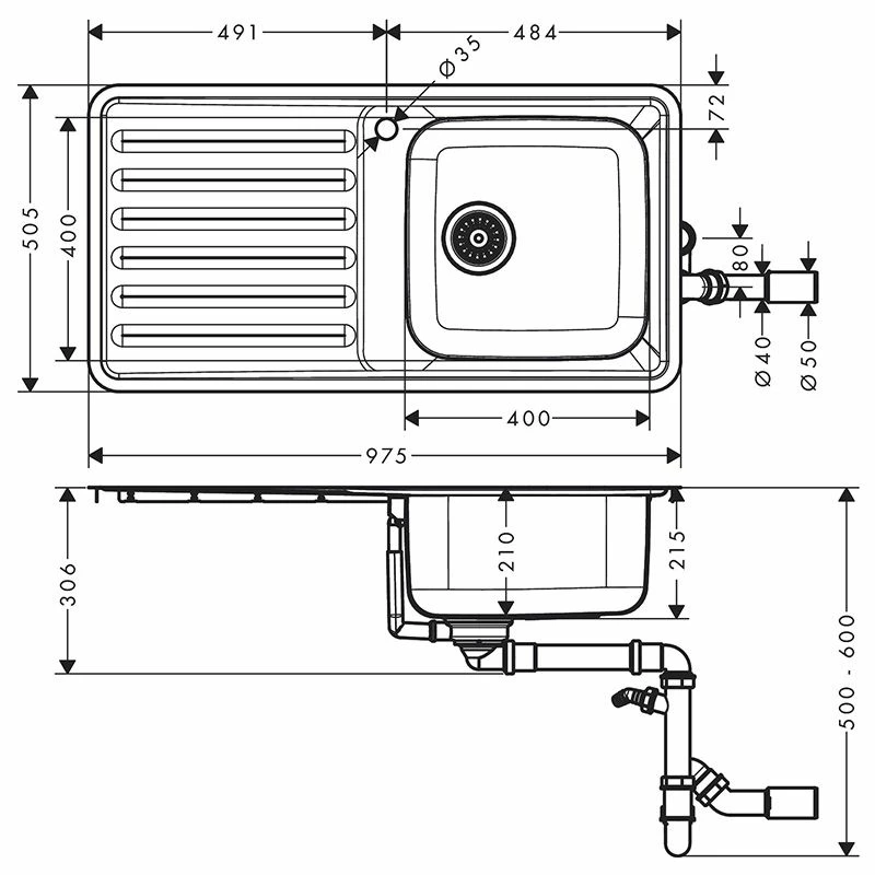hansgrohe S4111-F400 Built-in Sink 400/400 with Drainboard – Stainless Steel – 43341800 Details