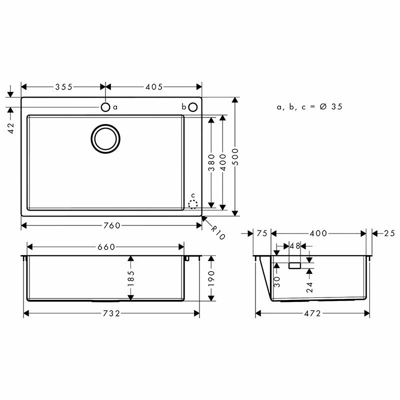 hansgrohe S712-F660 Built-in Sink 660 – Stainless Steel – 43308800 Details