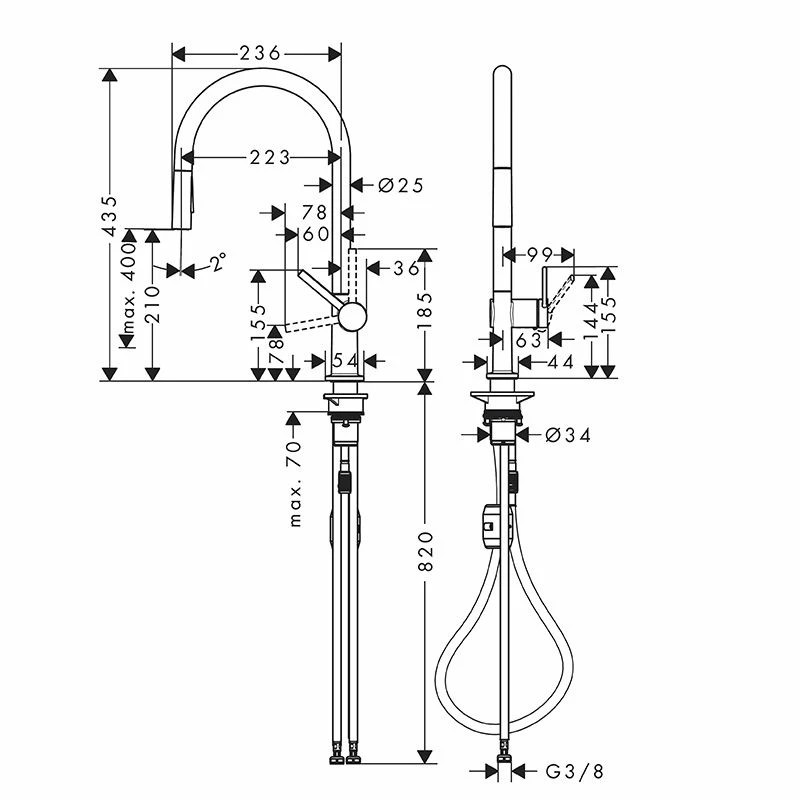 hansgrohe Talis M54 Single Lever Kitchen Mixer 210, Eco, Pull-Out Spray, 2jet – Chrome – 72842000 Details