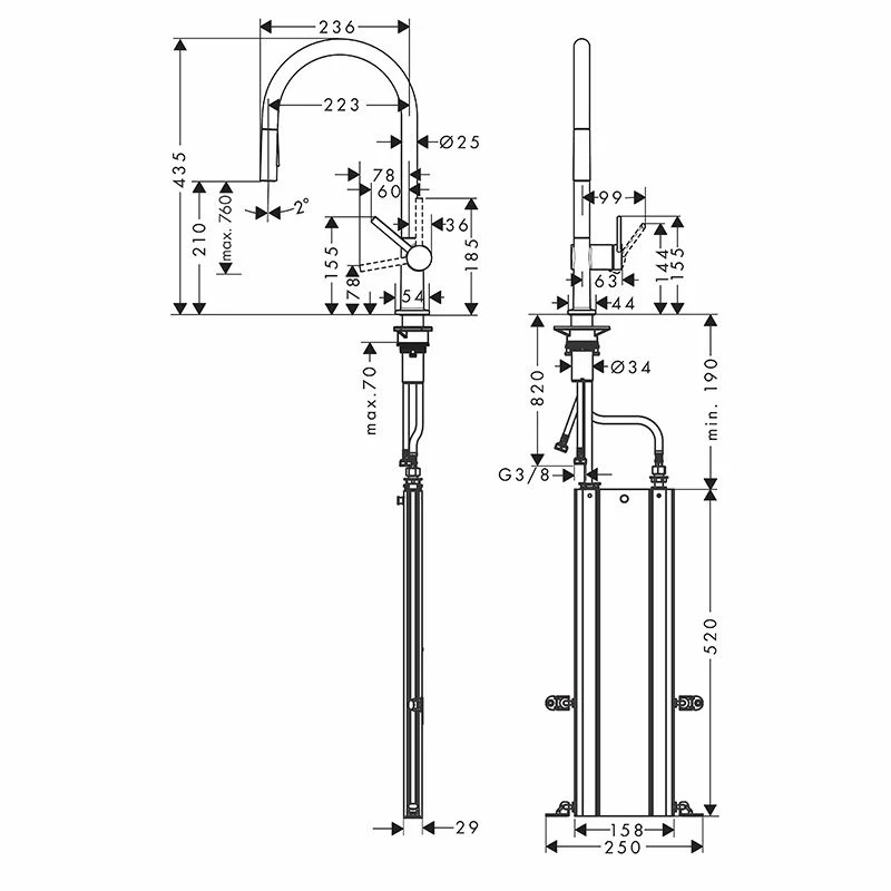 hansgrohe Talis M54 Single Lever Kitchen Mixer 210, Pull-Out Spray, 2jet, sBox – Matt Black – 72801670 Details