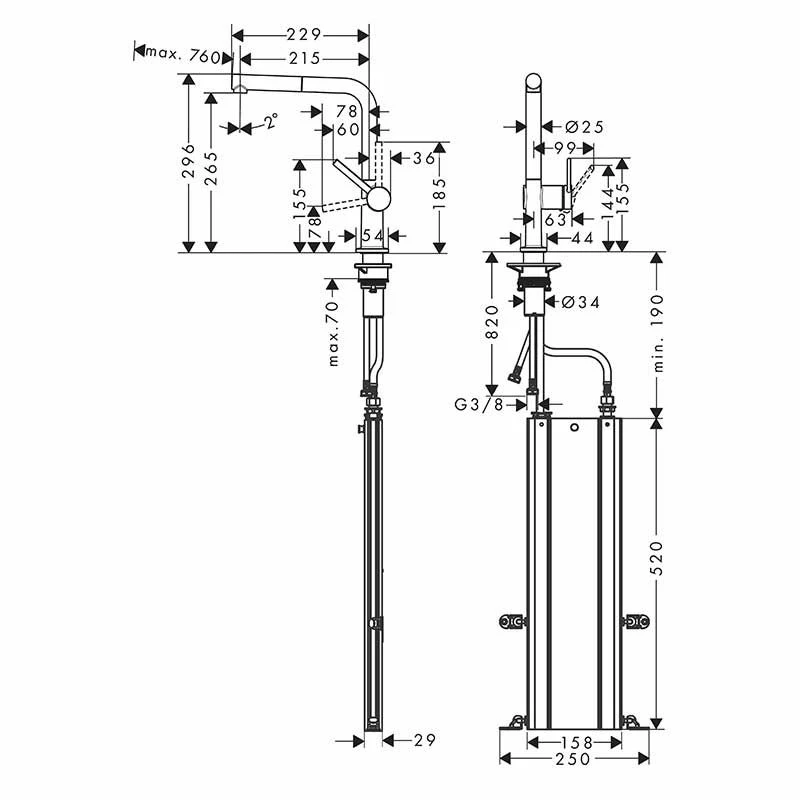 - Swivel spout adjustable in 4 steps 60ยฐ, 110ยฐ, 150ยฐ or 360ยฐ
