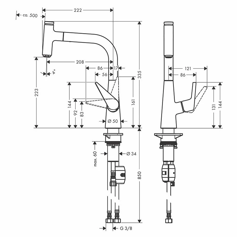 hansgrohe Talis Select M51 Single Lever Kitchen Mixer 220, Pull-Out Spout, 1jet – Chrome – 72822000 Details