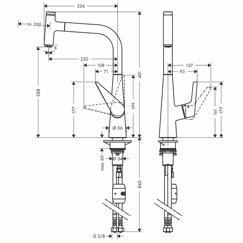 hansgrohe Talis Select M51 Single Lever Kitchen Mixer 300, Eco, Pull-Out Spout, 1jet – Stainless Steel – 72826800 Details