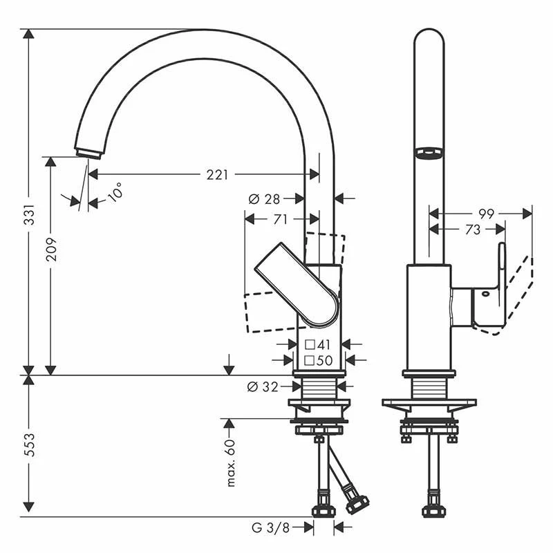 The single-lever design enables effortless control of water flow and temperature. With a simple movement of the lever, you can easily adjust the water to your desired temperature and flow rate, ensuring a convenient and customizable kitchen experience.