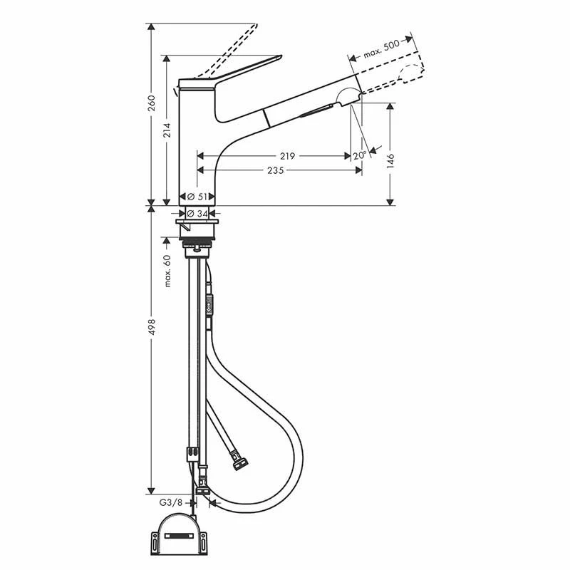 hansgrohe Zesis M33 Single Lever Kitchen Mixer Tap 150 With Pull-Out Spray 2Jet Sbox Lite – Stainless Steel – 74803800