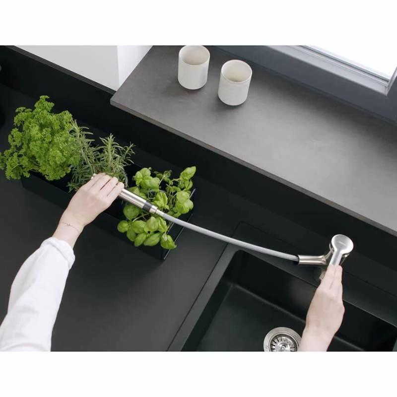 - Shower spray – Resource-saving shower spray at the sink. Whether fruit or vegetables, fish or meat, the soft spray helps to gently yet efficiently clean food and other items.