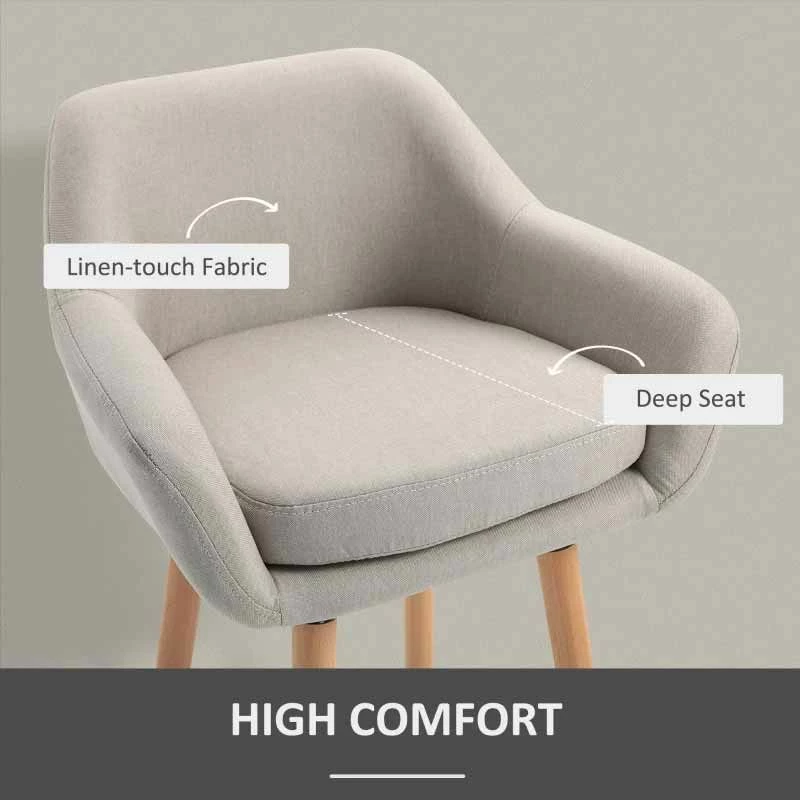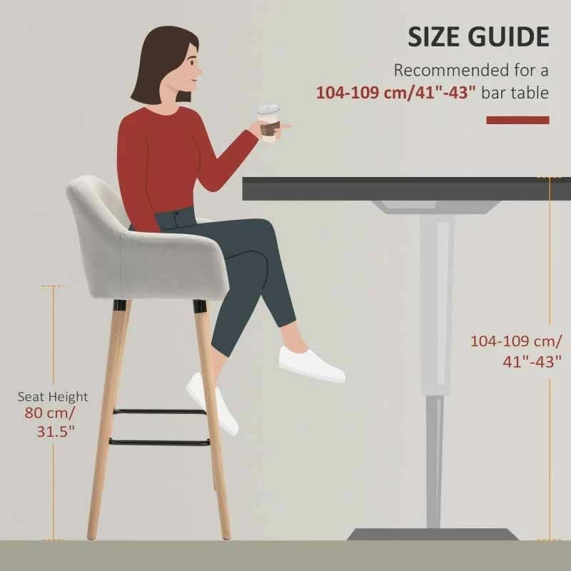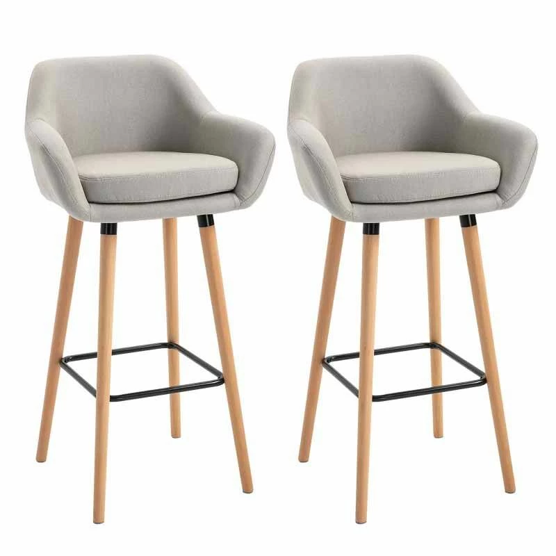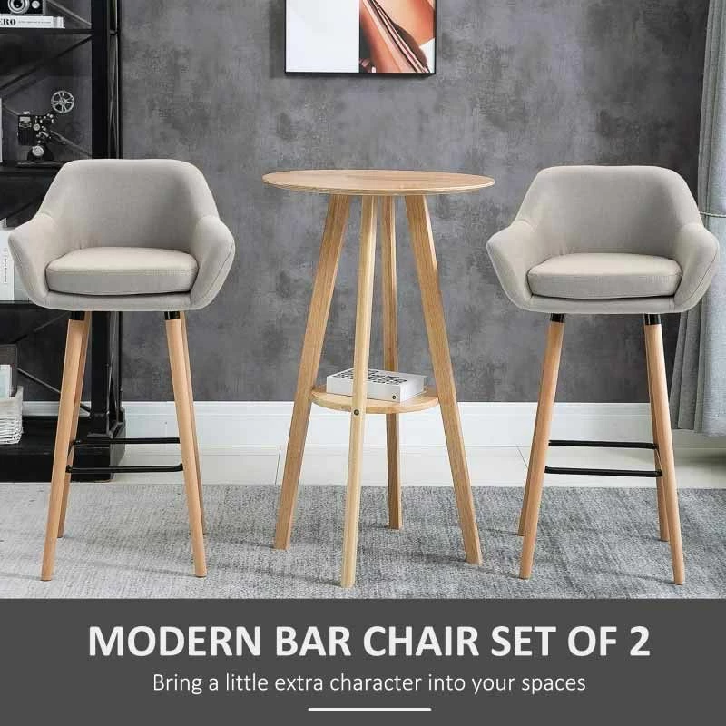 HOMCOM 2 Piece Bar Stools – Fabric Seats With Metal Frame & Wooden Legs – Beige – 835-141V70BG