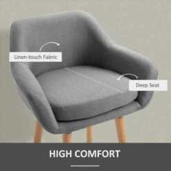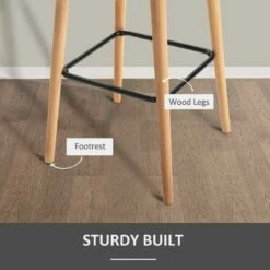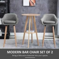 HOMCOM 2 Piece Bar Stools – Fabric Seats With Metal Frame & Wooden Legs – Grey – 835-141V70GY