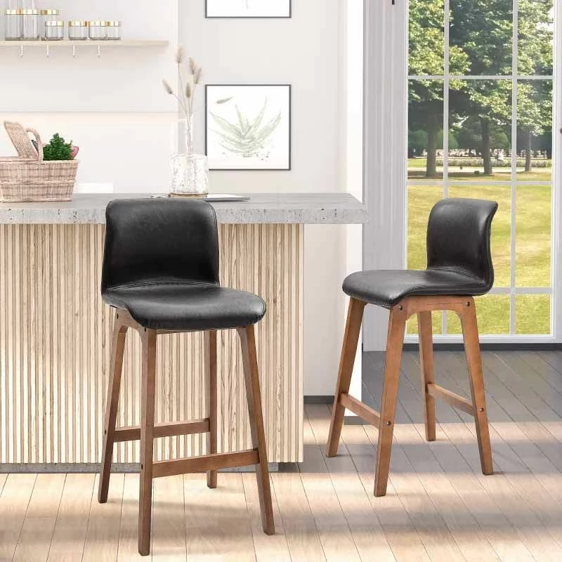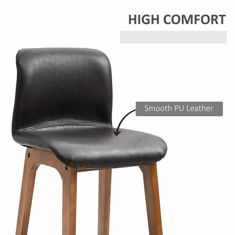 HOMCOM 2 Piece Bar Stools – PU Leather Seats With Wooden Frame & Footrests – Brown – 835-161V70DR