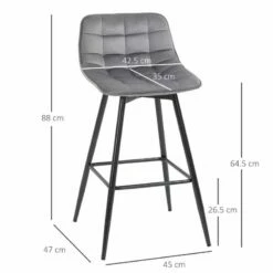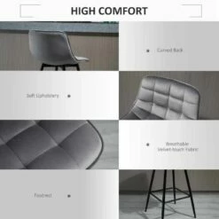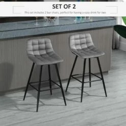 HOMCOM 2 Piece Bar Stools With Backs – Velvet Fabric Seats & Metal Legs – Grey/Black – 835-271V70