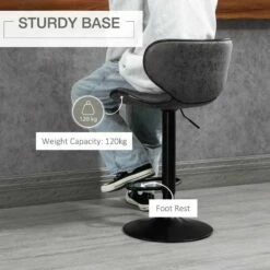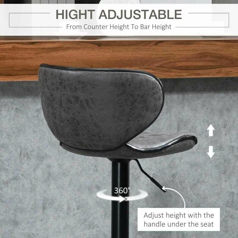 HOMCOM 2 Piece Height Adjustable Bar Stools With Swivel Seats & Footrests – Dark Grey/Black – 835-356V71CG