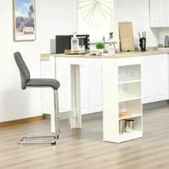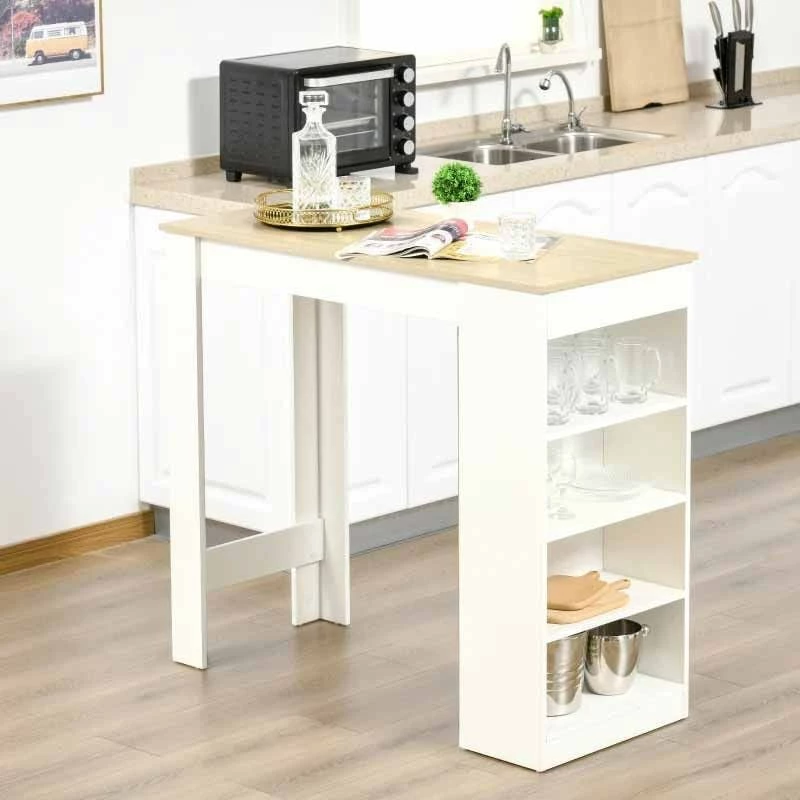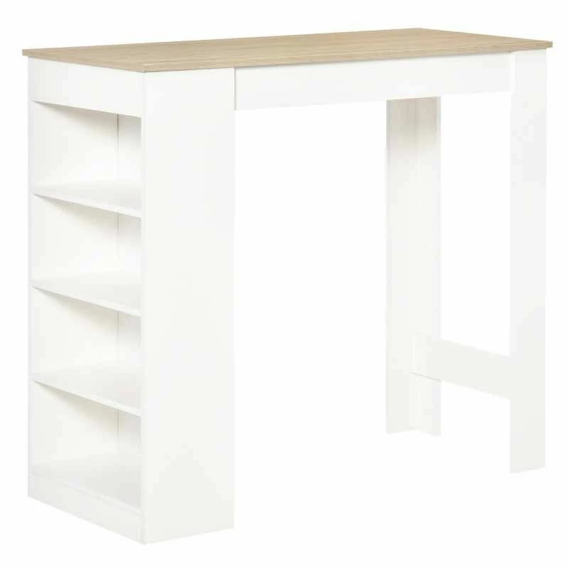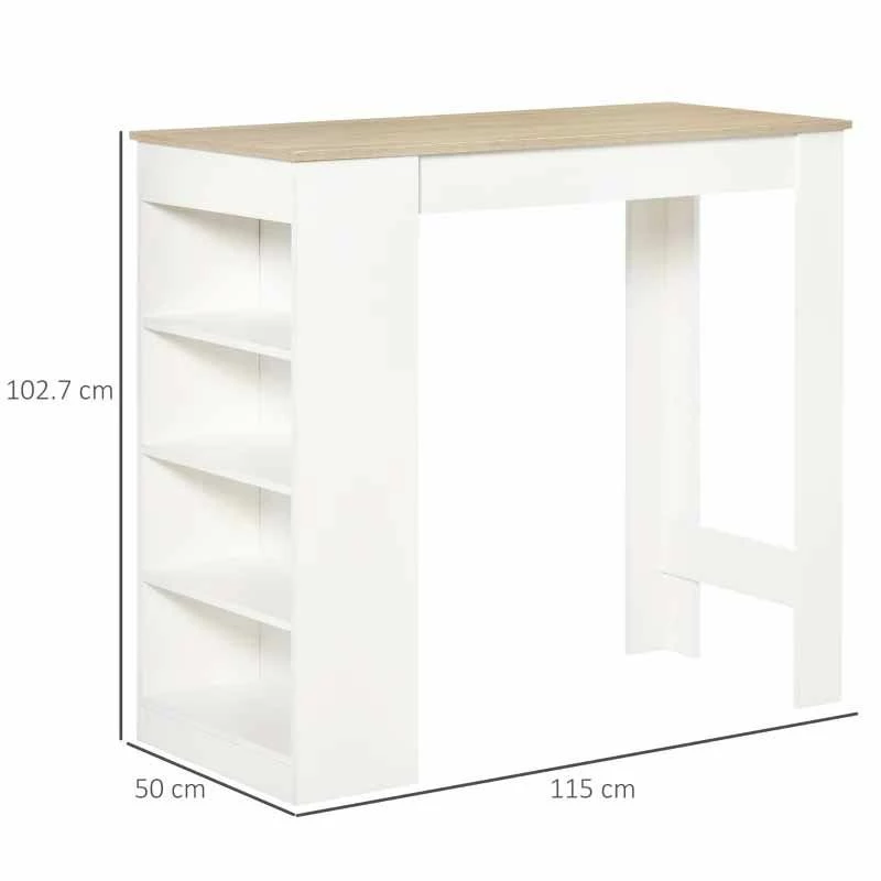 HOMCOM Breakfast Bar Table With 4-Tier Storage Shelf – White/Natural – 835-494ND