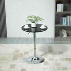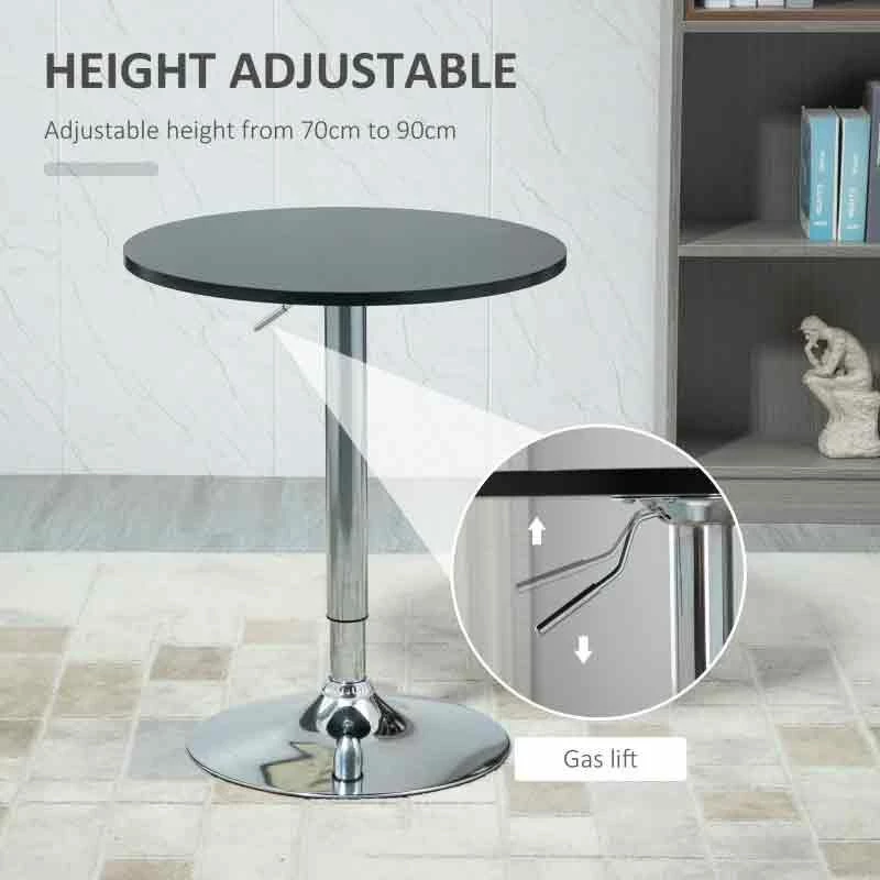 HOMCOM Height Adjustable Round Bar Table With Metal Base – Black/Chrome – 835-504