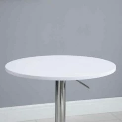 HOMCOM Height Adjustable Round Bar Table With Metal Base – White/Chrome – 835-388WT