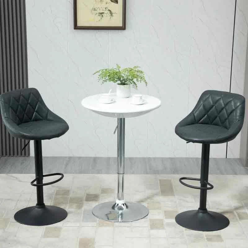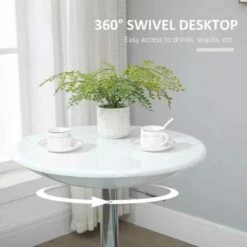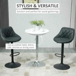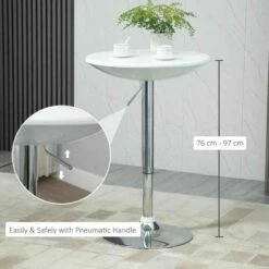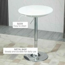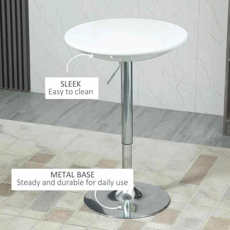 HOMCOM Height Adjustable Round Bar Table With Metal Frame – Chrome/White – 835-505WT