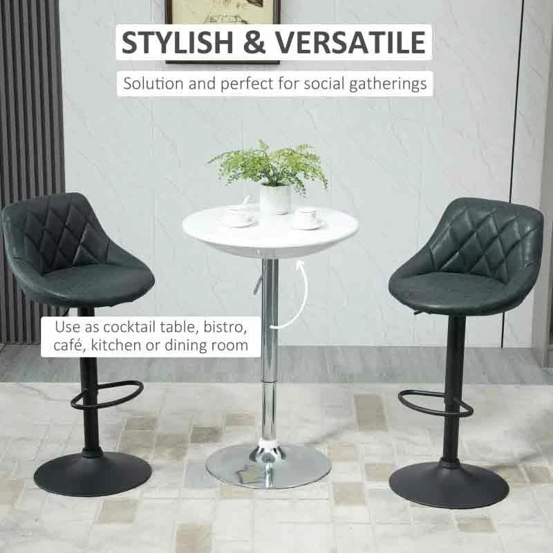 This HOMCOM Height Adjustable Round Table with an elegant and sleek design is perfect for indoor and outdoor living spaces. It is ideal for at home, in restaurants or cafes to give your guests a luxury dining experience.