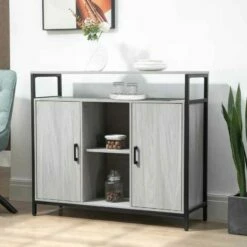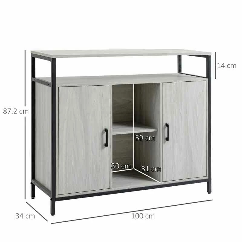 HOMCOM Modern Sideboard Storage Unit with 2 Doors – Light Grey – 835-675LG