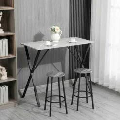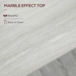 HOMCOM Rectangular Bar Table With Marble Effect & Steel Legs – White/Black – 835-939V00WT