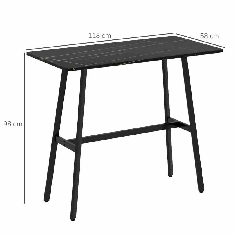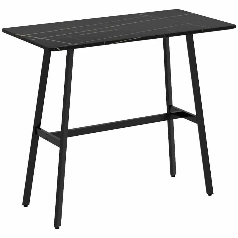 HOMCOM Rectangular Bar Table With Metal Frame & Marble Effect – Black – 83A-029V00BK