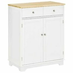 This HOMCOM cabinet, made of easy-to-clean rubber wood and MDF, is ideal for any kitchen or other space!