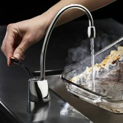 The InSinkErator GN1100 Steaming Hot Water Kitchen Tap sits neatly alongside your main tap and despenses instant filtered steaming hot at the pull of a lever.