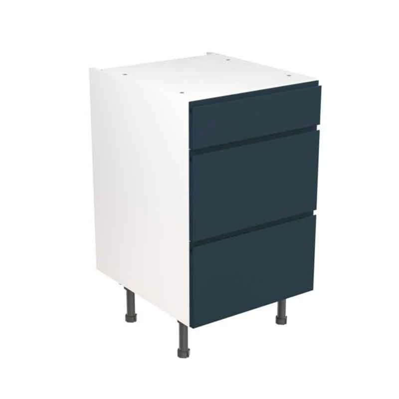 Kitchen Kit J-Pull 500mm 3 Drawer Base Cabinet – Ultra Matt – Indigo Blue – FKKJ1341
