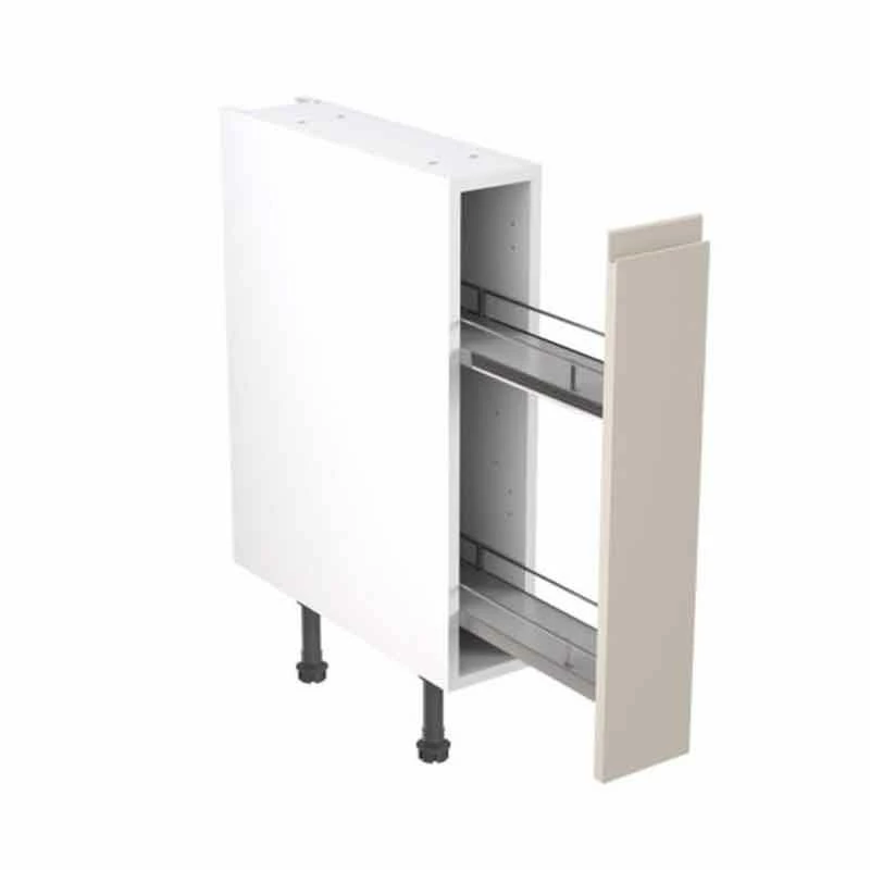 The Kitchen Kit J-Pull 150mm Pull Out Base Cabinet features a base units come with four adjustable legs, and there is a 49mm service void allowing plenty of space to conceal pipework and wiring. Kitchen Kit furniture includes the door, soft close hinges, and the cabinet making choosing the right furniture very straight forward. This product also comes with a 6 year manufacturers guarantee for your peace of mind.