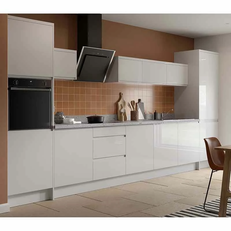 Kitchen Kit Rigid J-Pull 150mm Pull Out Base Cabinet – Super Gloss – Light Grey – Pre-Assembled – RKKHJ0251