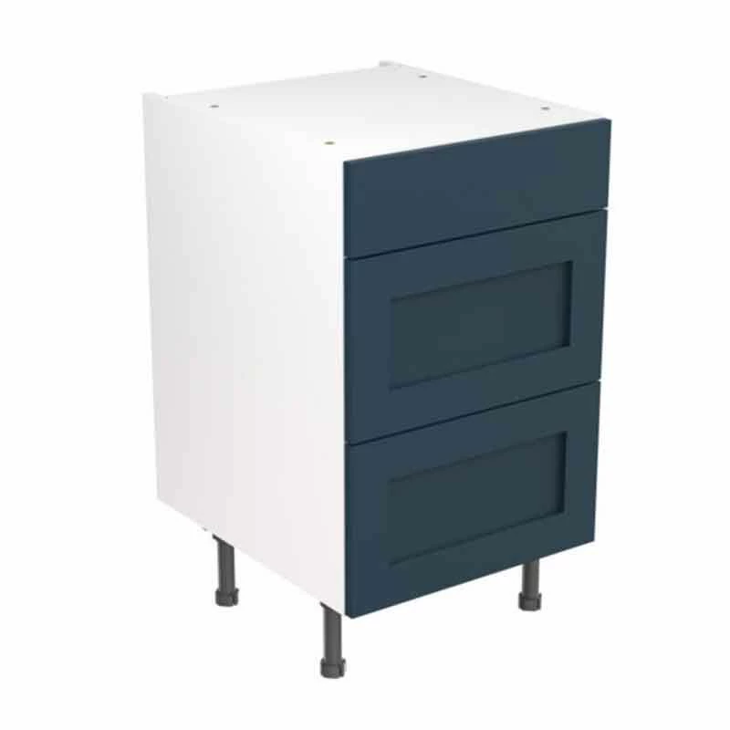 Kitchen Kit Rigid Shaker 500mm 3 Drawer Base Cabinet – Ultra Matt – Indigo Blue – Pre-Assembled – RKKH1341