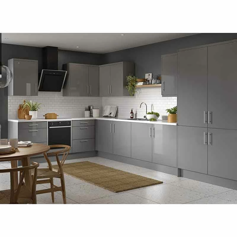 Kitchen Kit Rigid Slab 600mm Wall Cabinet – Super Gloss – Dust Grey – Pre-Assembled – RKKF0314