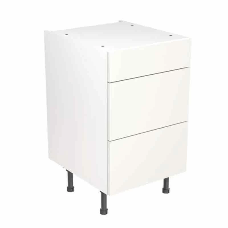 Kitchen Kit Rigid Value Slab 500mm 3 Drawer Base Cabinet – Standard Matt – White – Pre-Assembled – RKKM1041