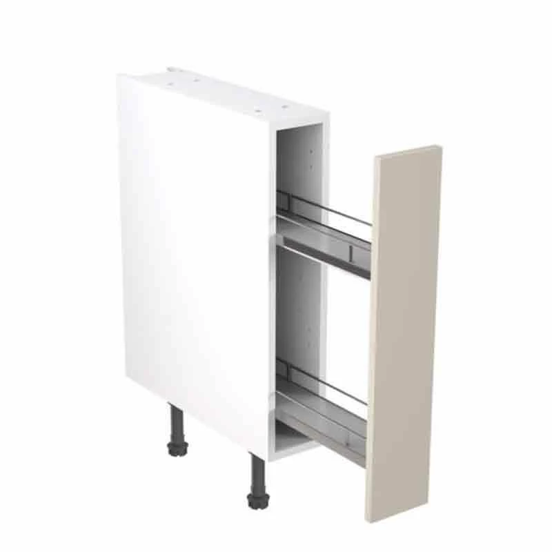 The Kitchen Kit Slab 150mm Pull Out Base Cabinet features a base units come with four adjustable legs, and there is a 49mm service void allowing plenty of space to conceal pipework and wiring. Kitchen Kit furniture includes the door, soft close hinges, and the cabinet making choosing the right furniture very straight forward. This product also comes with a 6 year manufacturers guarantee for your peace of mind.