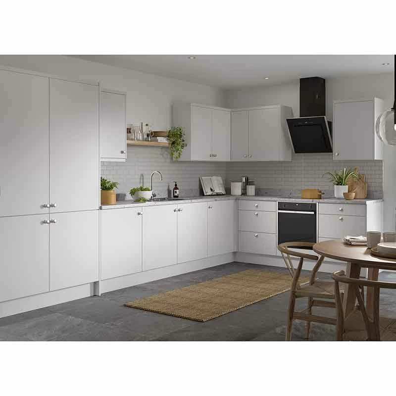 The Kitchen Kit Slab 800mm Base Cabinet features doors which can be hinged on the left or right side of this kitchen unit to best suit your layout. The four adjustable legs make it easy to achieve maximum stability, while a 49mm service void allows you plenty of space for concealing pipes or wiring. This product also comes with a 6 year manufacturers guarantee for your peace of mind.