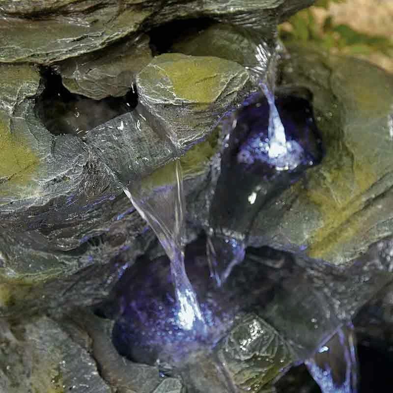 - This fountain includes a low voltage LED light