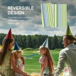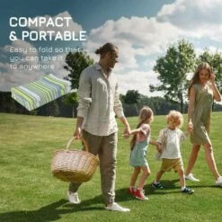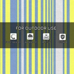 Embrace the versatility of the Outsunny Waterproof Outdoor Rug for all your outdoor adventures. Whether you’re camping, picnicking, attending festivals, or simply enjoying your own garden, this rug is your go-to companion. Its convenient foldable design allows for easy transport and setup wherever you desire. Crafted from durable and water-resistant polypropylene with a protective coating, it’s built to withstand outdoor conditions while preventing sun fading and damage. The reversible feature ensures you can utilize both sides, maximizing its longevity. With its stylish light blue, yellow, and white stripe pattern, this garden rug adds a fresh and vibrant touch to any outdoor space. Elevate your outdoor experience with this durable and versatile outdoor rug.