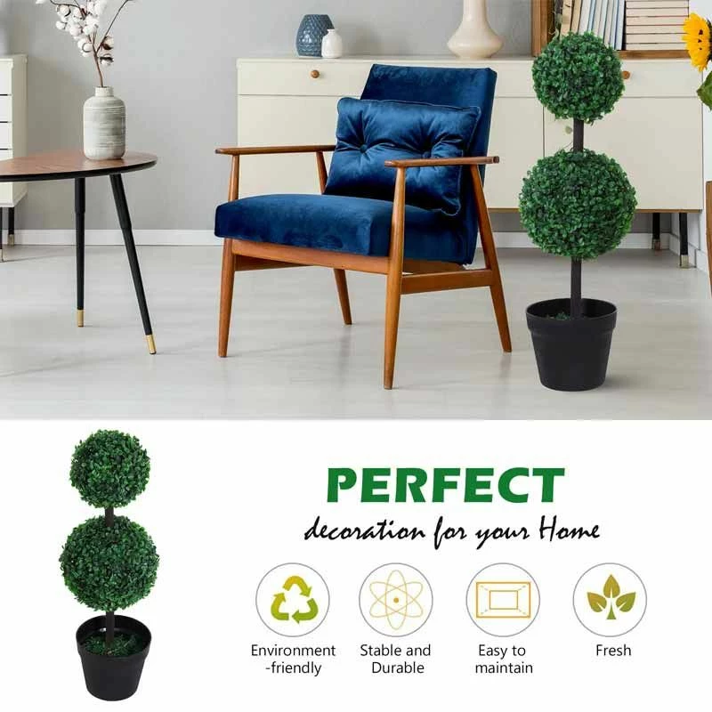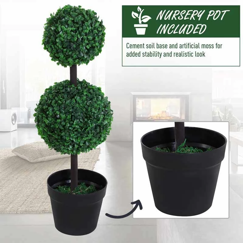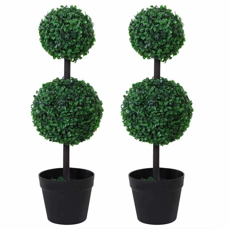 Outsunny 2-Piece Round Artificial Plants with Pot – 670mm – Green – 844-264V01