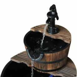 Outsunny 2 Tier Wooden Garden Water Feature – Brown – 844-097