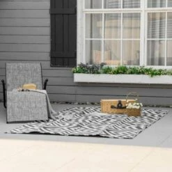Outsunny 5 x 8ft Reversible Outdoor Rug – Black & White – 844-479V01