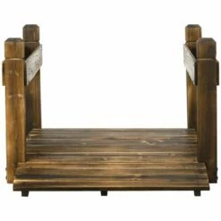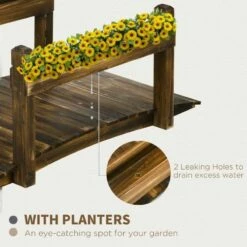 Outsunny 5ft Wooden Garden Bridge with Planters on Safety Railings – Brown – 844-618V00TN