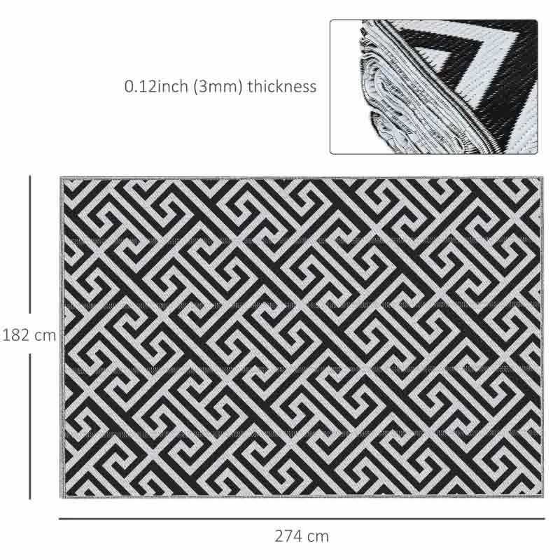 Outsunny 6 x 9ft Reversible Outdoor Rug – Black & White – 844-480