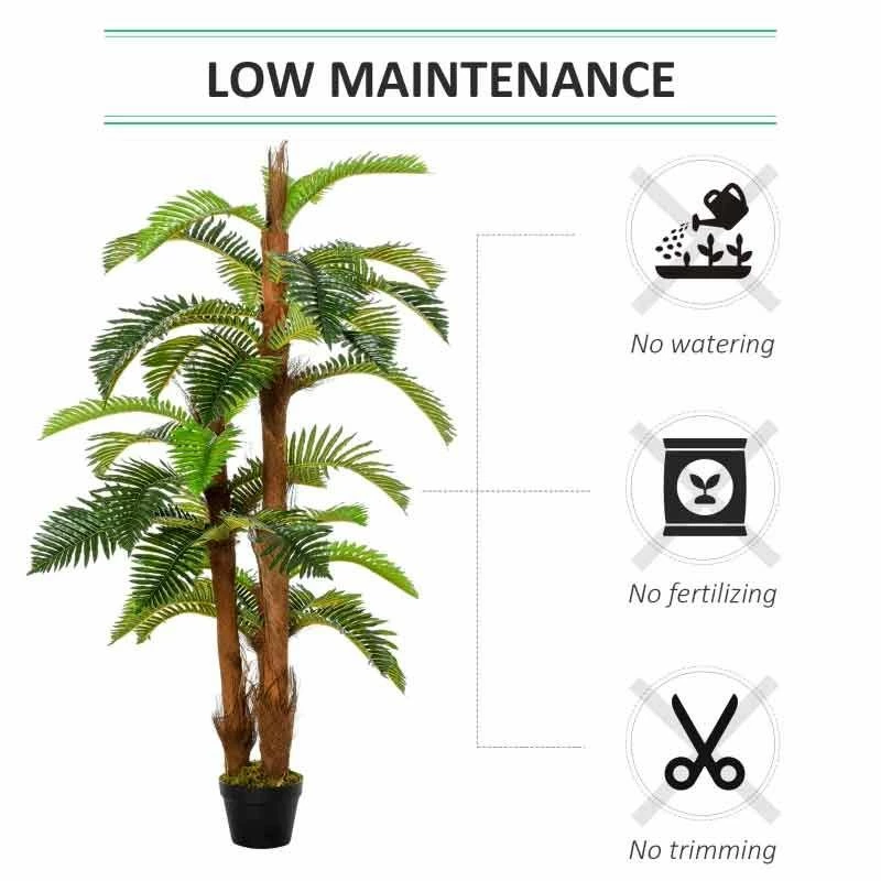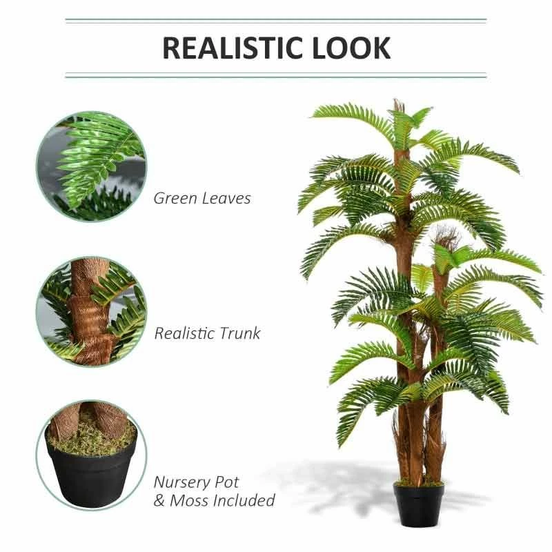 Check out the Outsunny artificial plant with nursery pot included and Fern design to brighten up your indoor and outdoor living space. Made from a high-quality plastic and rich hues this plant has a natural texture and realistic look. This plant is easy to maintain, no watering is required and can be wiped clean with a damp cloth. The pot is filled with cement and covered in grass making this plant sturdy and won’t topple over. If you are looking for the perfect decorative piece for your living spaces, look no further, this plant is the one for you.