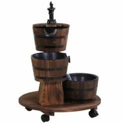 Outsunny Fir Wood 3 Barrel Water Feature with Electric Pump – Brown – 844-271V70