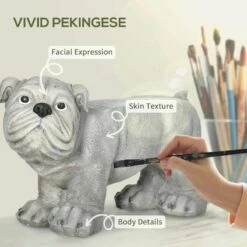 Outsunny Realistic Pekingese Dog Garden Ornament / Statue – Grey – 844-659V00GY