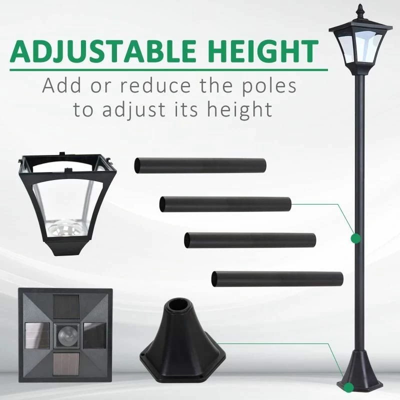 Outsunny Solar Powered Lamp Post – Black – 842-107